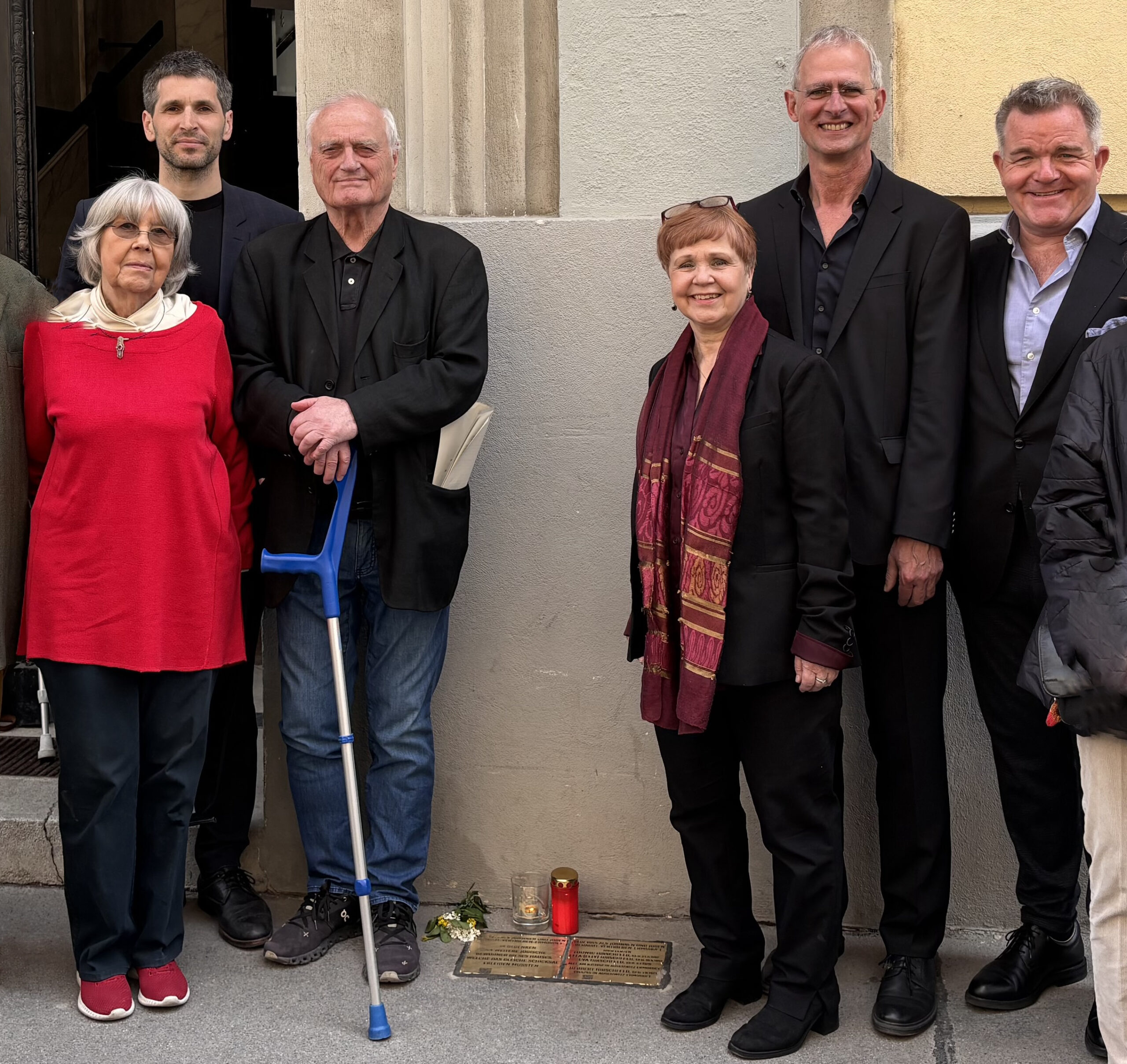 mit (v.l.n.r.) Brigittenauer Bezirksvorsteher Karl Lacina, Bezirksrätin Elfriede Strobel, Karas' Enkel Werner Chudik, Wiener Kulturstadtrat Andreas Mailath-Pokorny und Karas' Tochter Wilhelmine Chudik. Wien-Brigittenau, 4.7.2006.